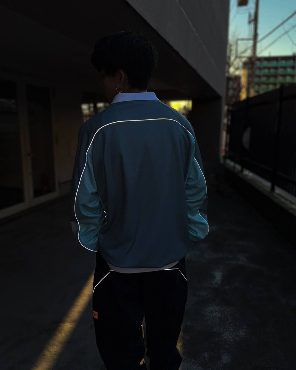 리플렉터 파이핑이 독특한 절개라인을 강조하고,밑단에는 드로우코드가 있어 실루엣 조절도 자유롭게.
